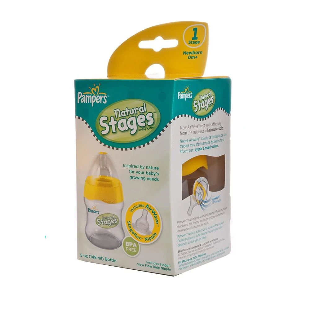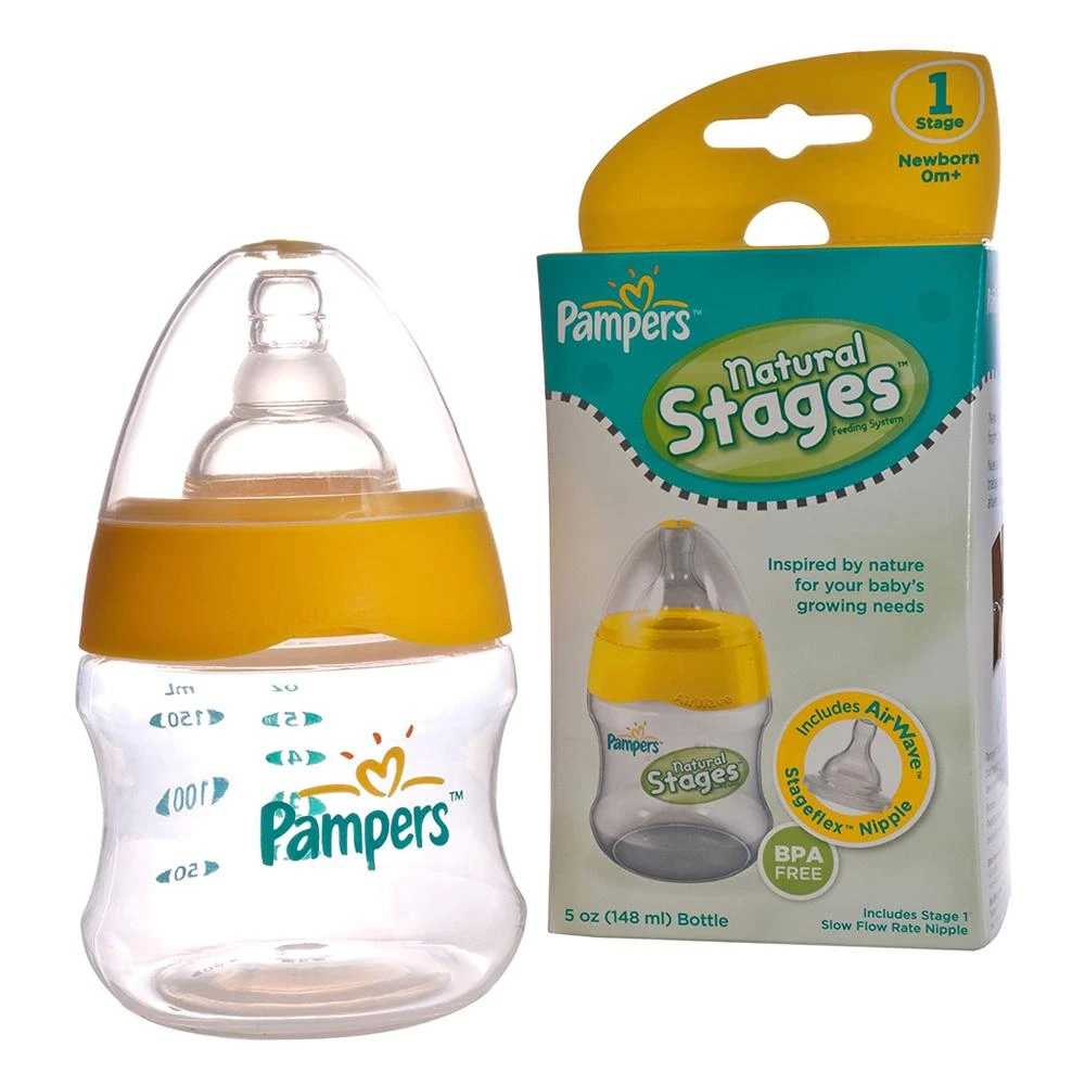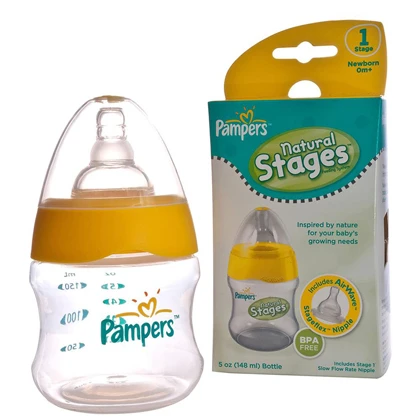 Specifications of Pampers Natural Stages Feeding Bottle 148ml/5oz with Air wave Venting Technology Feeder