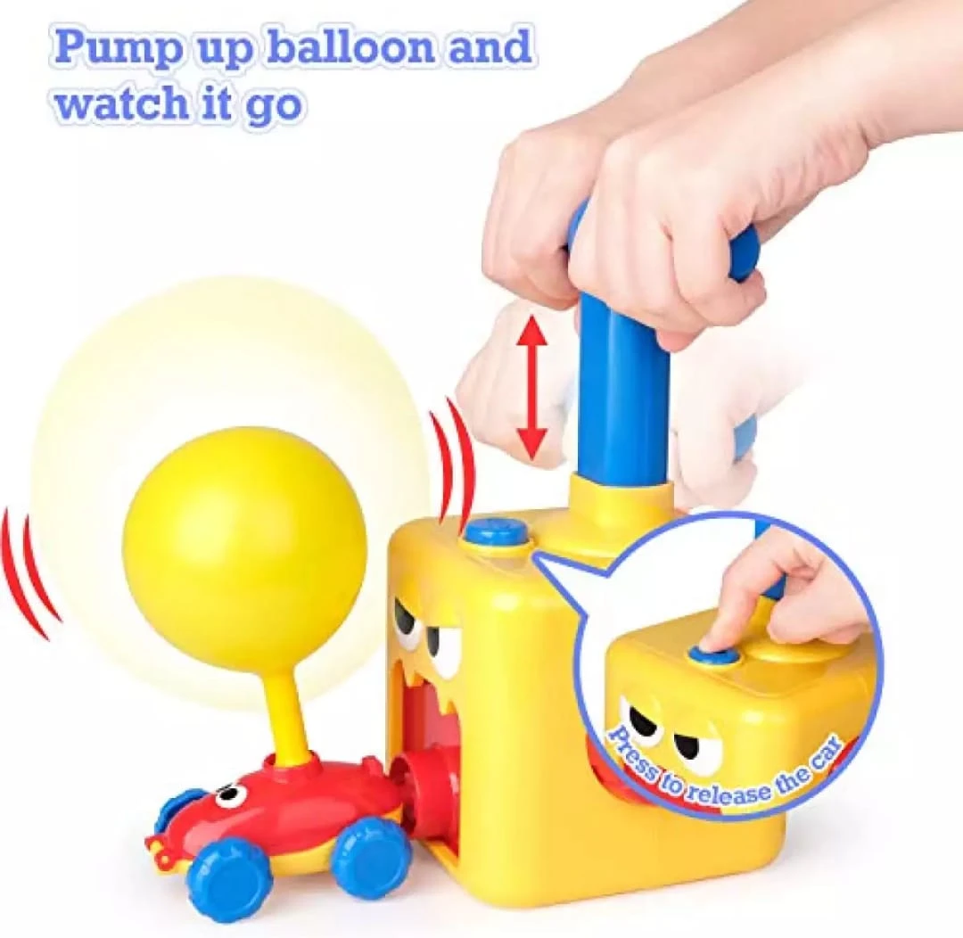 - Power Balloon Racer Car Toy, Balloon Launcher Powered Car Toy Set, Balloon Powered Launch Car, Inflator Air Pump Vehicle with Pump for Kids (Yellow)