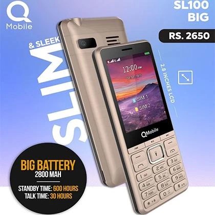 Product details of Qmobile SL100 Big – 2.8inch Display, Camera, Torch, Big Speaker, FM Radio, 2800mAH Battery