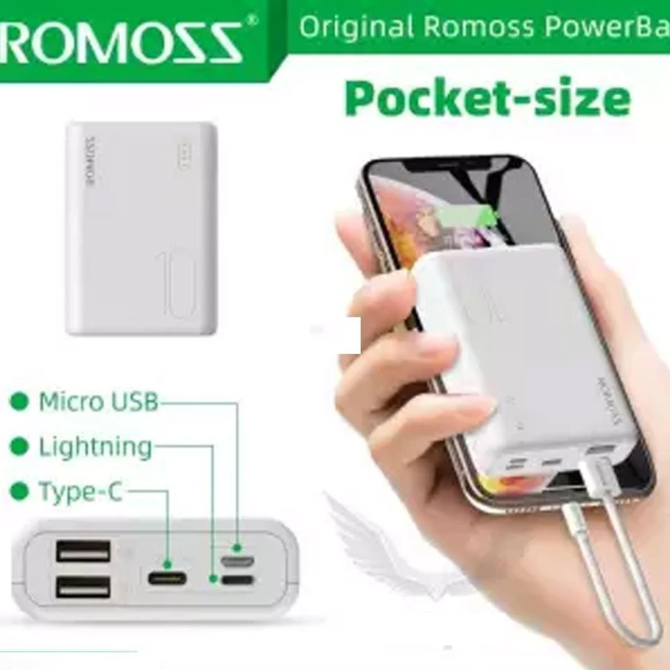 BrandRomossSKU223545863_PK-1440941678Number of USB Ports3Battery Capacity5001 mAh to 10000 mAhCharging Cable IncludedNoOutput PowerNot SpecifiedInput TypeMicro USB,TYPE-CModelSimple10Powerbank FeaturesFast Charging