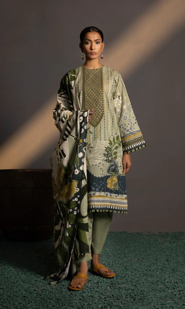 Sapphire- 3PC Lawn Embroidered Printed Shirt with Printed Chiffon Dupatta