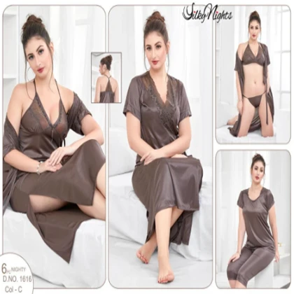 Silky Nights 6-Pieces Bridal Nightwear With Lace Work For Girls & Women – Dusty Brown