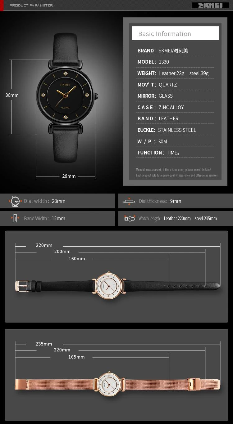 Specifications of SKMEI Fashion Ladies Quartz Simple Casual Elegant Waterproof Watches for Women 1330