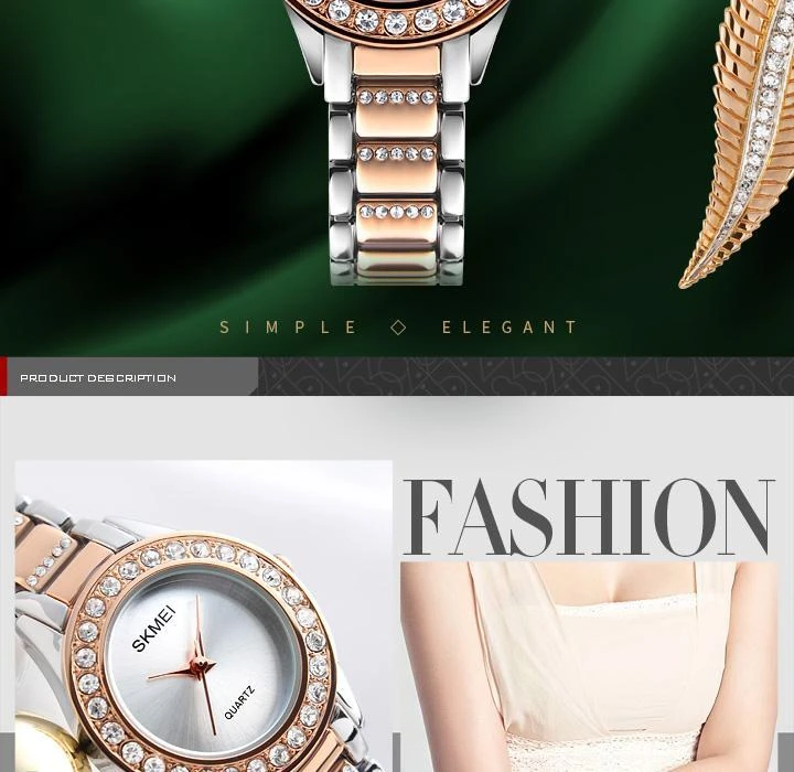 Specifications of SKMEI Women Fashion Watches Luxury Stainless Steel Strap Quartz Watch Ladies Waterproof Casual Wristwatches 1262
