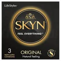 - SKYN® Original Non-Latex Lubricated condoms provide a Natural feeling experience with heightened sensitivity while being safe and suitable for people with latex allergy and latex sensitivity.