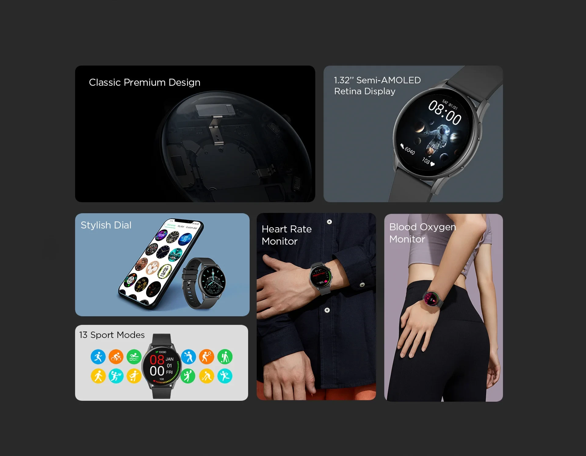 K10 is equipped with a 2.5D curved semi-amoled full touch screen with a high resolution of 360×360 pixel that provides vibrant and clearer view. Thanks to the side drawing artwork, it presents as a premium watch with awesome and killer design and Its extremely slim body ensures a comfortable wearing experience.
