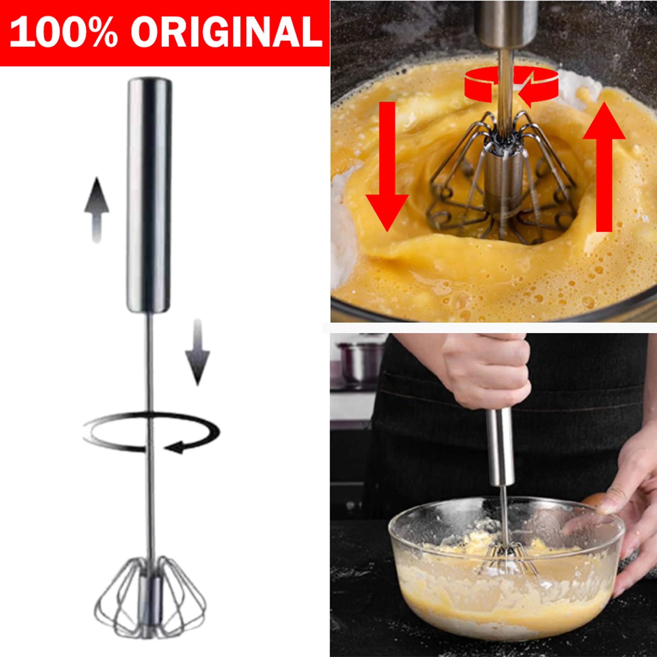 Whatβs in the box 1 x Stainless Steel Egg whisker Dishwasher safe Hand push egg whisker beater Effortless and efficient spin Fast blending and mixing 360 degreen spin rotation result in easy whisking Fast Mixing & Blending–Durable fast mixing and blending Durable Manual h