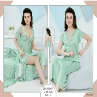 This Set Includes: T-Shirt , Short Pajama , Nighty , Gown , Net Bra & Panty Silk Viscose imported Free Size