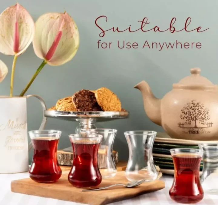 Set of 6 thin waist turkish tea cups high quality glasses-5 o’clock presentation serving – for six person – each glass 135 cc Set of 6 thin waist turkish tea cups high quality glasses-5 o’clock presentation serving – for six person – each glass 135 ccSet of 6 thin waist turkish tea cups high quality glasses-5 o’clock presentation serving – for six person – each glass 135 ccProduct sizesProduct Capacity: 135 ccβ’ Dimensions 90 mm X 60 mmProduct featuresColor: Transparent6 Piecesβ’ Tea glass setMaterial: Glass