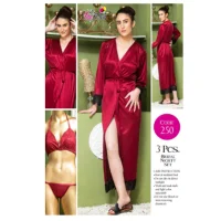 Two Hearts 3-Piece Silk Nightwear For Girls & Women – Maroon