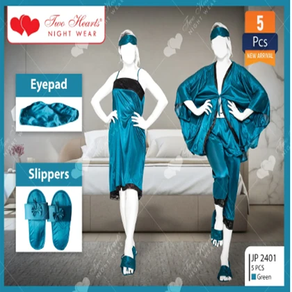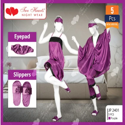 Two Hearts 5 Piece Silk Nightwear & Lingerie For Girls & Women – Purple