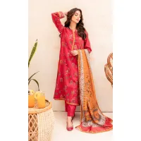 Crimson- 3PC Lawn Embroidered Shirt with Embroidered Dupatta