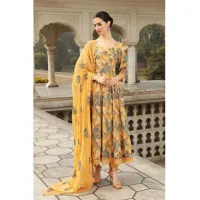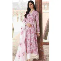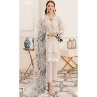 3PC Lawn Shirt Heavy Embroidery with Embroidered Bamber Chiffon Dupatta (D)
