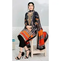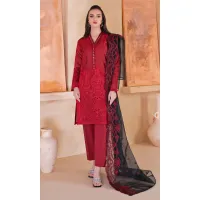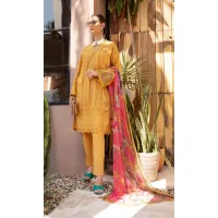 Gul Ahmed- 3PC Embroidered Printed Shirt with Printed Chiffon Dupatta