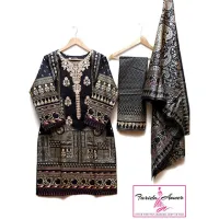 Khaadi – 3PC Dhanak Embroidered Shirt With Embroidered Dhanak Wool Shawl