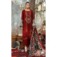 Maria.b 3-PC Embroidered Dhanak Shirt With Printed Shawl