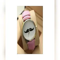 D Marts Pink Strap Moustache Watch For Girls D369