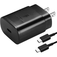 Samsung 25w Watt USB Type C Charger, PD Fast Wall Charger for Samsung Galaxy Note 10Note 10 PlusNote 2020 UltraS20S20 UltraS10 5G with USB C to USB C Cable ( Box Pulled ) US Lot