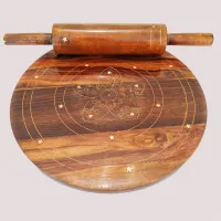 Chakla Belan – Chakna Belna – Set with Brass Work – Bread Rolling Board and Rolling Pin, Chakla Belna
