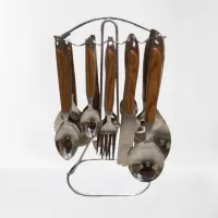 Cutlery Set Wood Handle Design Spoon Set With Stand 29Pcs Serving for 6 Person
