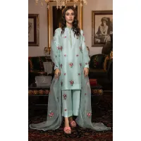 Bareeze – 3PC Kataan Silk Embroidered Shirt With Organza(D)