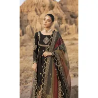 Akbar Aslam-3PC Velvet Embroidered Shirt With Organza(D)