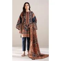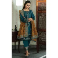 Limelight- 3PC Embroidered Dhanak Shirt with Printed (D)