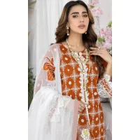 MUSHK – 3PC Organza Embroidered Shirt With Organza (D)