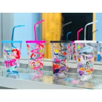 Juice Glass Juice Glass with Straw Big Size Acrylic Juice Glass with Straw Random Designs and colors