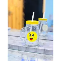 Juice Glass Juice Mug Juice glass with lid and straw Emoji design juice glass