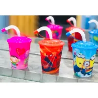 Kids Juice GlassCups with straw different designscartoon characters