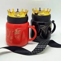 King Queen couple mugs with crown Lid. Classical cermic mug, a best gift for wedding or anniversary or for parents