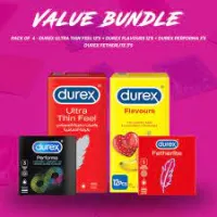 Durex Pack of 4 – Durex Extra Safe 12’s + Durex Flavours 12’s + Durex Performa 3’s + Durex Play Tingle Lube 50ml