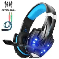 Kotion Each G9000 Stereo Gaming Headset for PS4, PC, Xbox One Controller, Noise Cancelling Over Ear Headphones with Mic, LED Light, Bass Surround, Soft Memory Earmuffs for Laptop – Blue