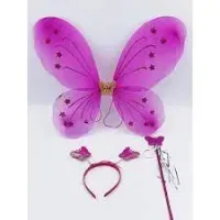 Butterfly Fairy Wing 3 in 1 Cosplay Costume For Little Girls, Butterfly Wings Costume For Girl Child, Fairy Butterflies Wings with Magic Wand & Head Band For Costume Party, Birthday Celebrations & Theme Parties, Dress Up, Pretend, Angel Wings