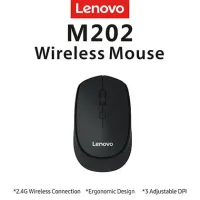 Lenovo M202 2.4GHz Wireless Mouse Office Mouse 4 Keys Mute Mice Ergonomic Design with 3 Adjustable DPI for PC Laptop Black