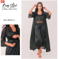 Body Girl 2 Pieces Long Bridal Silk Nightwear For Girls & Women – Black