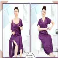 Tee Dot 2-pieces Bridal Nightwear Nighty & Gown For Girls & Women – Purple