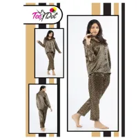 Tee Dot 2-Pieces Silk Printed Pajama & Shirt For Girls & Women – Black & White