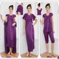 Tee Dot 4-pieces Bridal Nightwear For Girls & Women – Purple