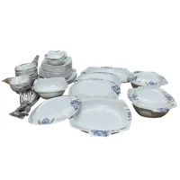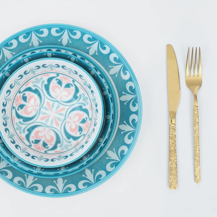 A charming set to brighten your mood every time you sit down to eat with your loved ones. According to saying a family that eats together stays together, and what better way to strengthen the bond than to bring a grin to the table. Scalloped vibes floral teal ceramic dinner set-24 pcs