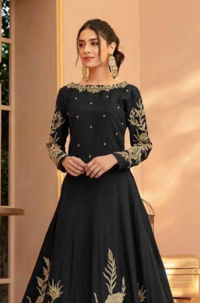 plain back (4×1.45 yards cloth measurements for long style frock, same as model pic) embroidered sleeves