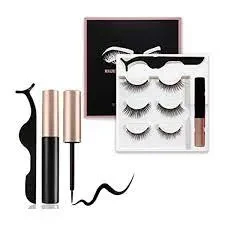 Product details of 3 Pairs Magnetic Eyelash With Magnetic Liquid Eyeliner & Tweezer Eyelash