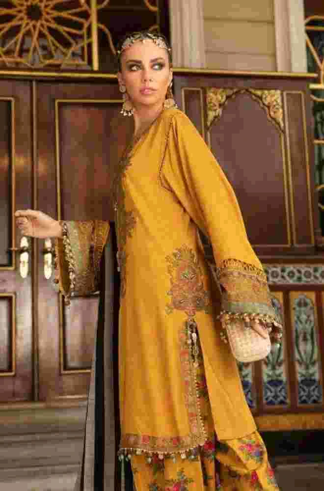 3PC Lawn Neckline Embroidered Shirt with Printed Chiffon Dupatta (D)