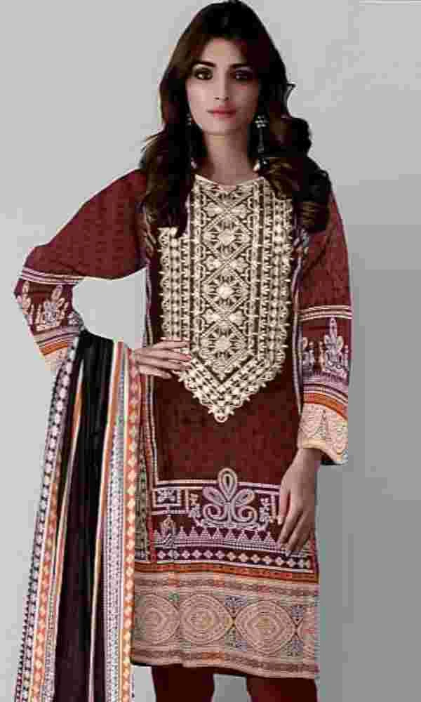 Summer/Spring Collection Printed Shirt with Neckline Embroidered Printed Lawn Dupatta Dyed Lawn Trouser