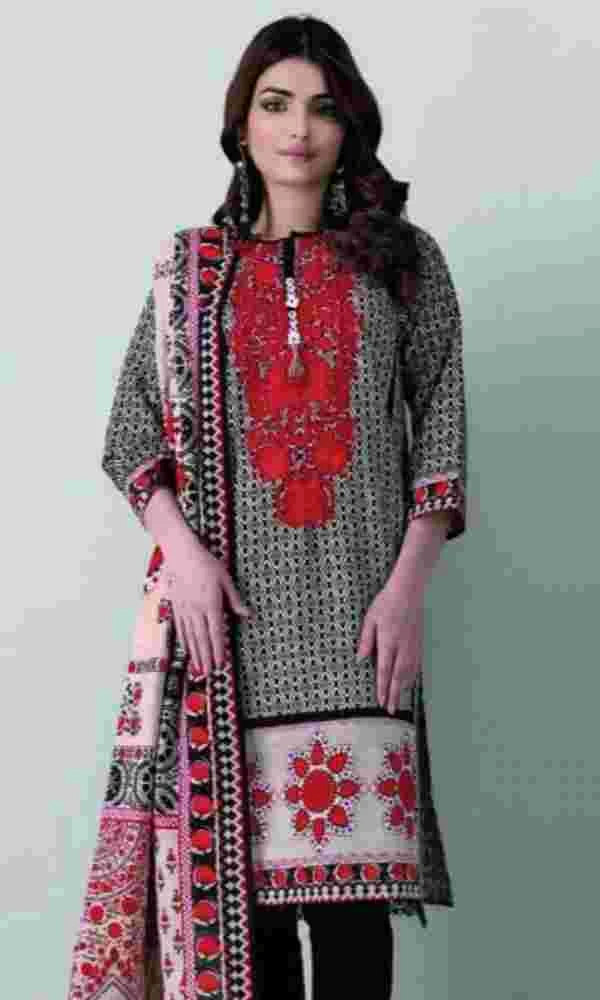 Summer/Spring Collection Printed Shirt with Neckline Embroidered Printed Lawn Dupatta Dyed Lawn Trouser