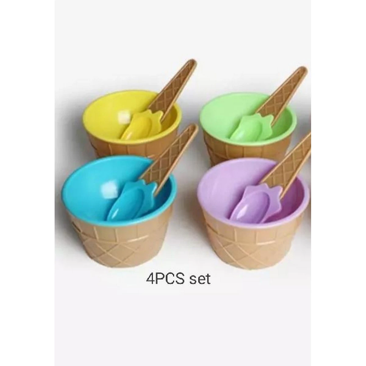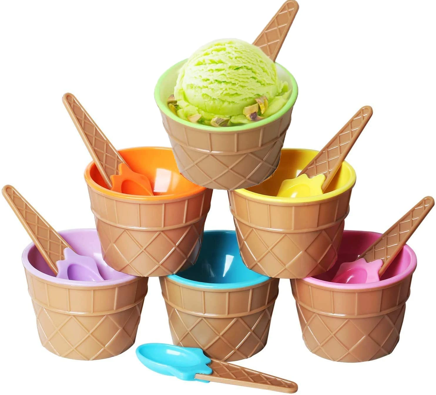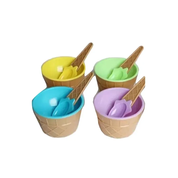 Product details of 4 Pcs (4spoon+ 4Bowls) Ice Cream Bowls Fashioned Ice Cream Waffle Cone Style Bowl with Spoon Set Baby Kid Cute Feeding Tableware Plastic Utensil Party Favors Dessert