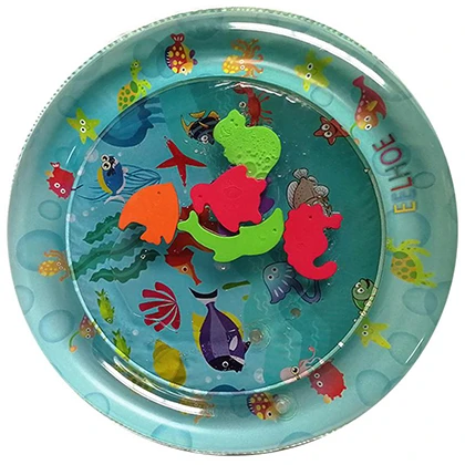 50cm diameter colorful marine themed water playmat.Fill it with water in the middle first and inflate on the sides with the included hand pinch inflator pump.Colorful marine animal foam toys that will appear to be moving due to the water effect and your baby will be fascinated by the colors and movement.Help your baby strengthen neck and arm muscles, improve motor skills, develop hand-eye coordination and promote crawling.Made of heavy-duty materials, leak-proof, tear-resistant, non-toxic, no harm to babies.