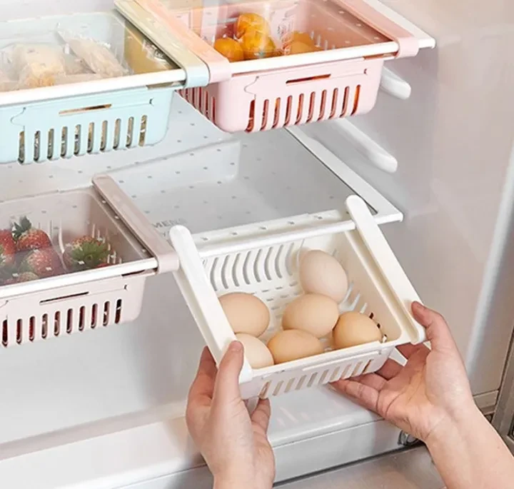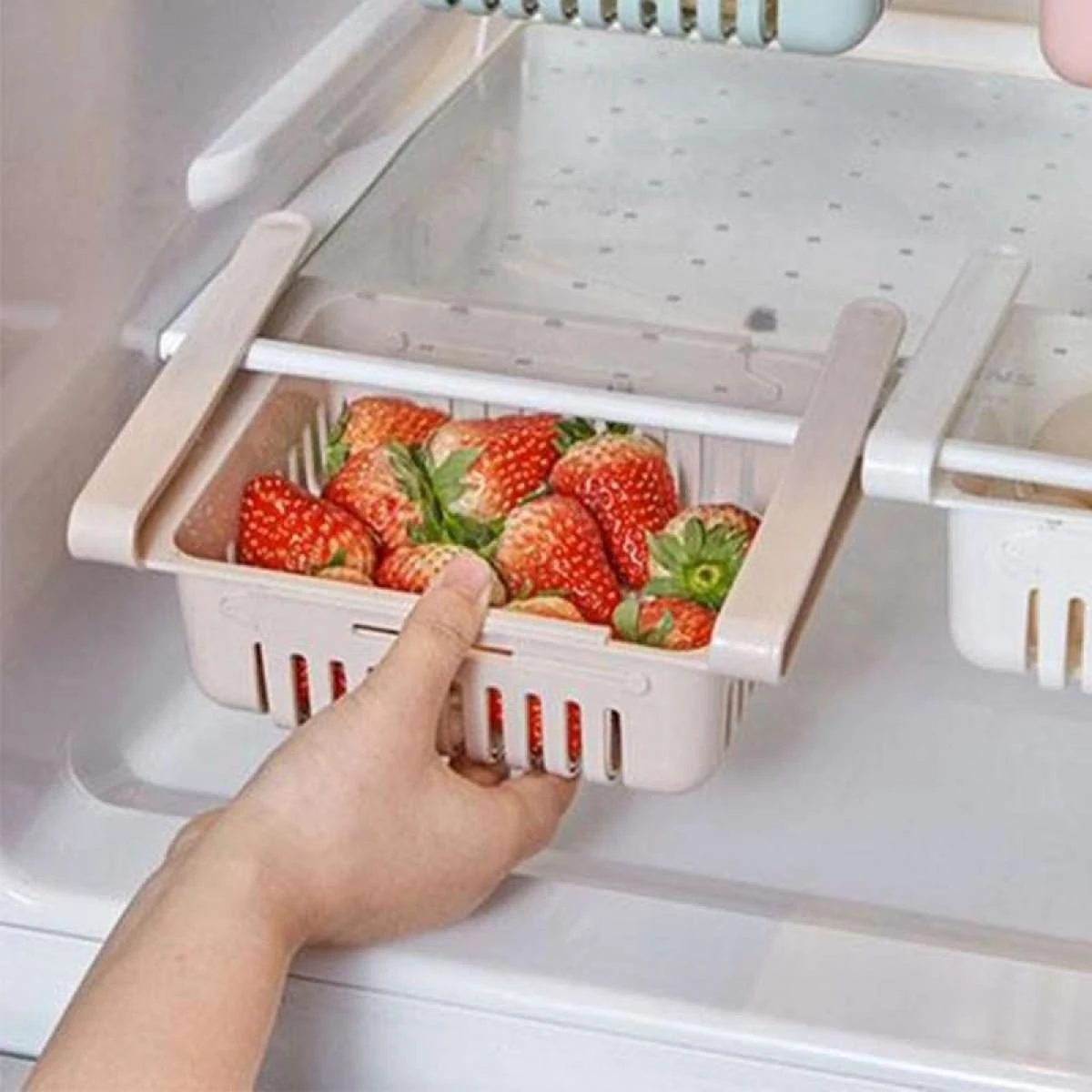 Product details of Adjustable Storage Basket For Fridge | Plastic Basket | Stretchable Food Organizer | Fruit Rack | Food Manager | Table Storage Basket | Space Saver For Food | Vegetable and Spices Storage Basket | Fruit Organizer Drawer | Cabinet Space Saver Basket |