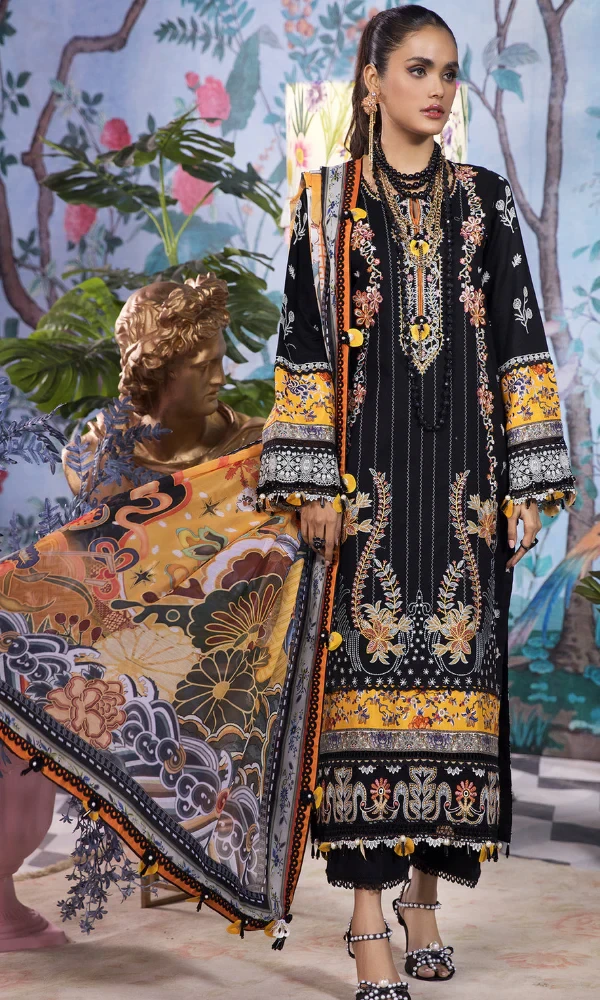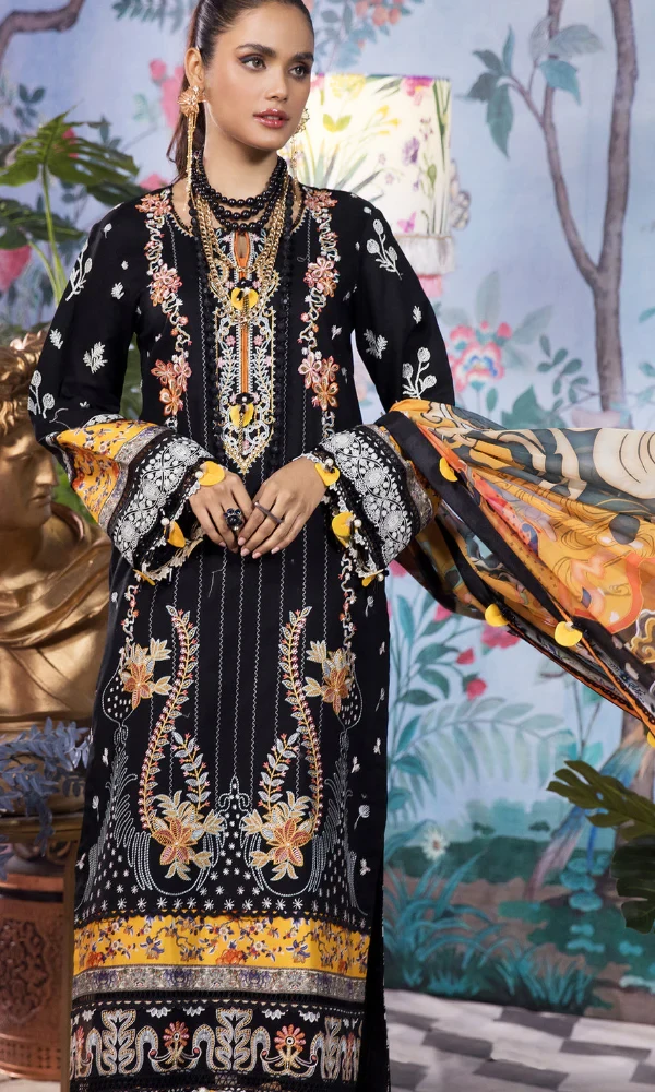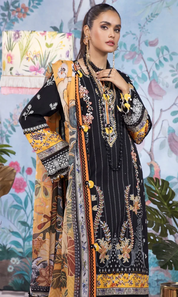 Anaya- 3PC Embroidered Printed Shirt Chiffon Dupatta
